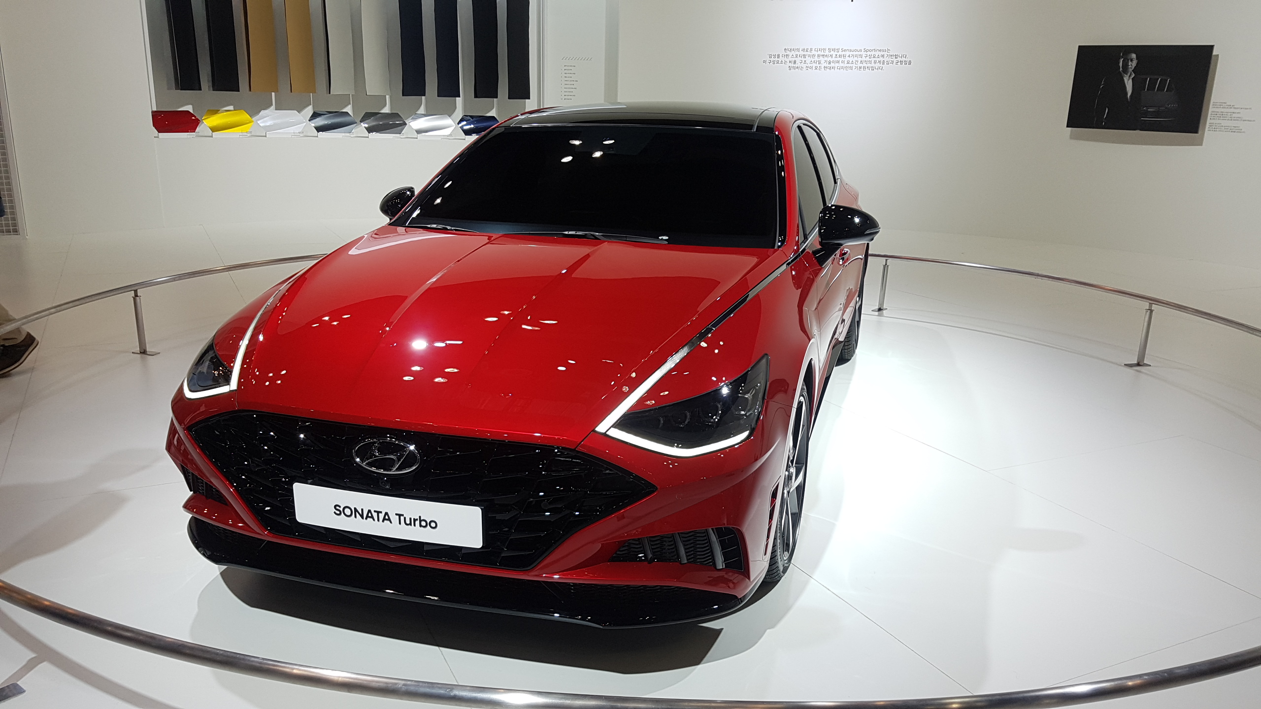 다양한 소나타 모델과 수소차인 넥소가 전시되었습니다.