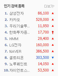 오늘의 인기검색 종목 알아보겠습니다.