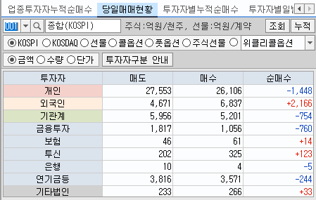 지금까지 외국인의 강한 매수세가 보입니다.